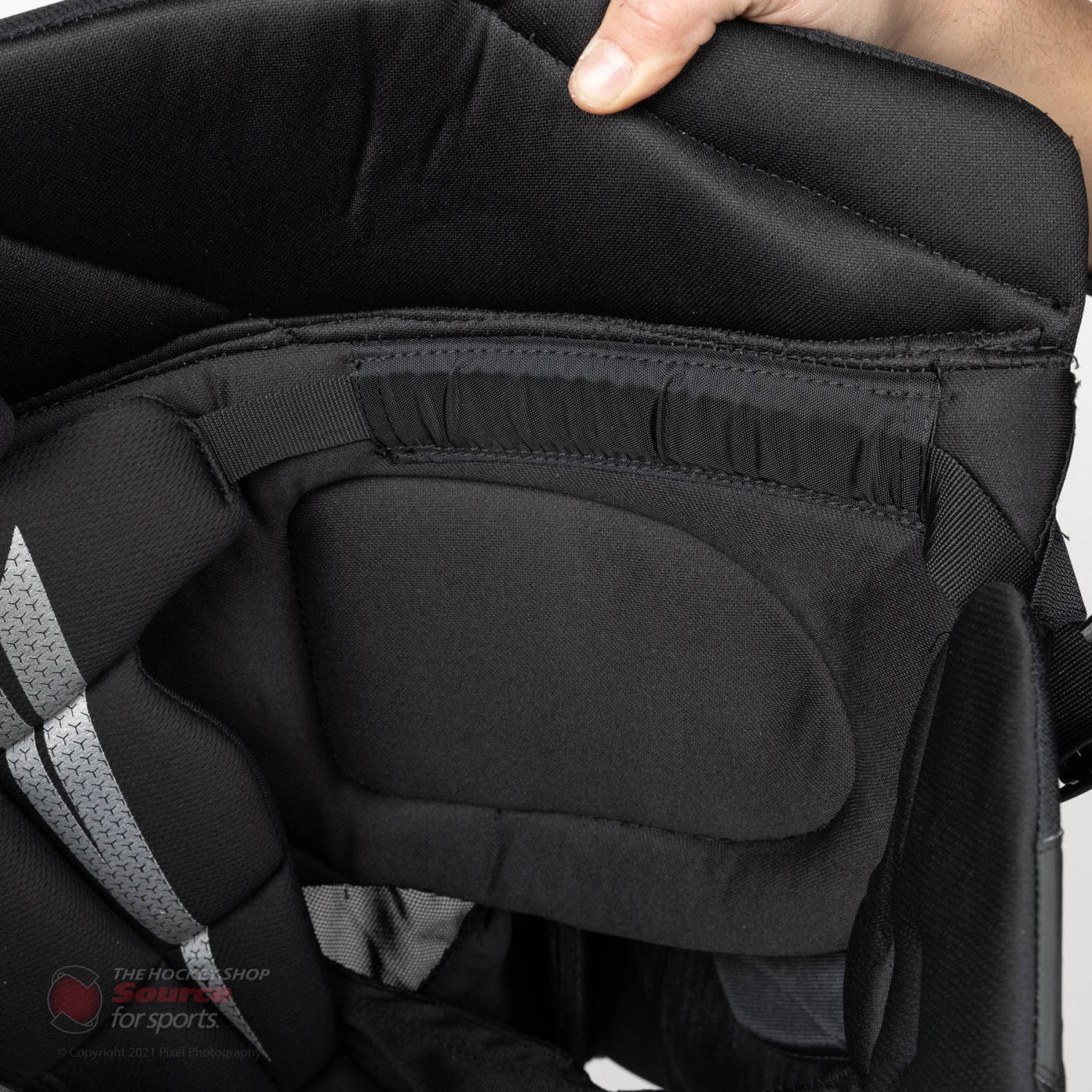 The belt on the Bauer 3S Pro pants is covered by MD foam which offers an additional layer of protection between the thigh and kidney pads. Bauer has also added a zippered extension feature which allows the player to add an additional 1” to the overall length. This feature is beneficial to the player who finds themselves in a possible growth spurt mid season, or in between sizes.