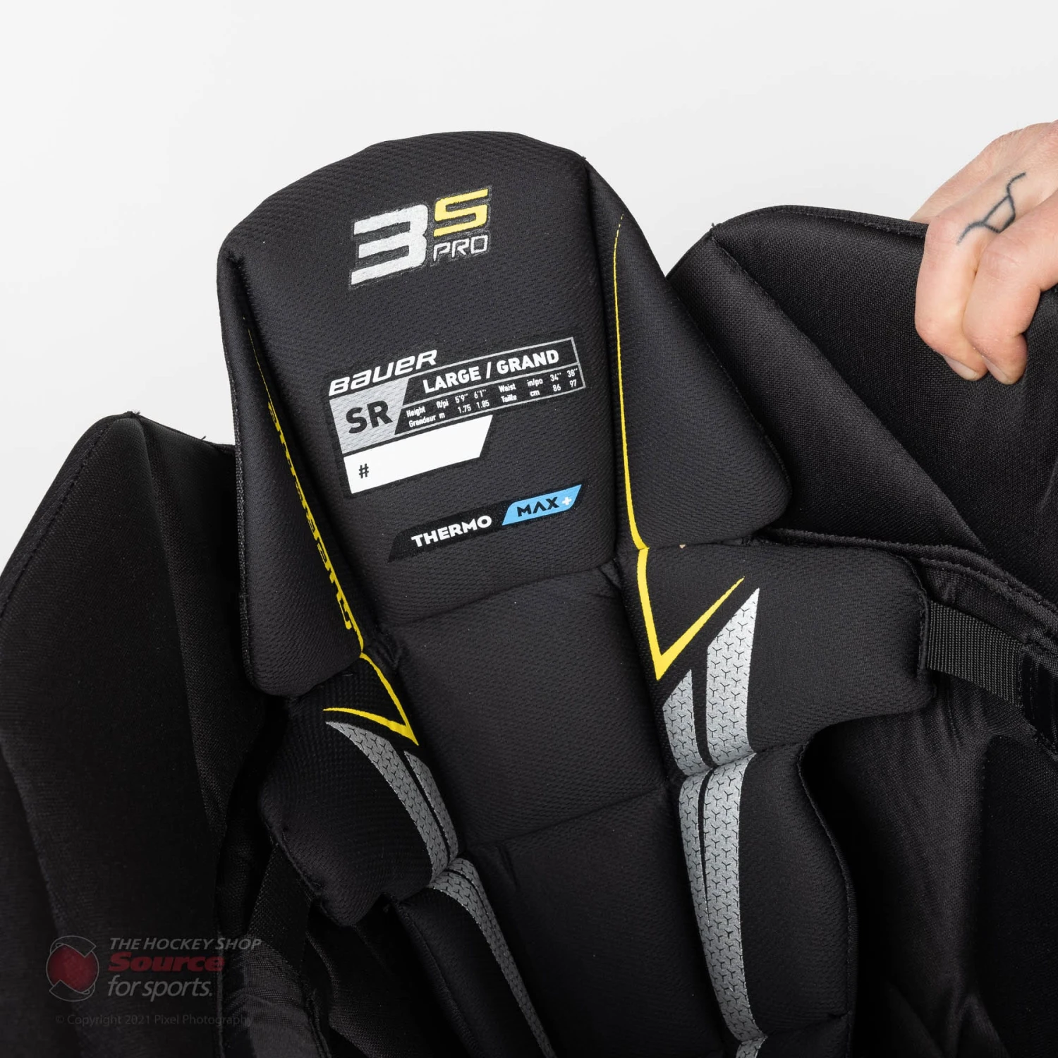 The Bauer 3S Pro pant uses an independent spine protection piece which moves with the body during play and adds Vented Armour Foam. This is a protective and reliable material that keeps the lower spine protected from any unwanted contact.