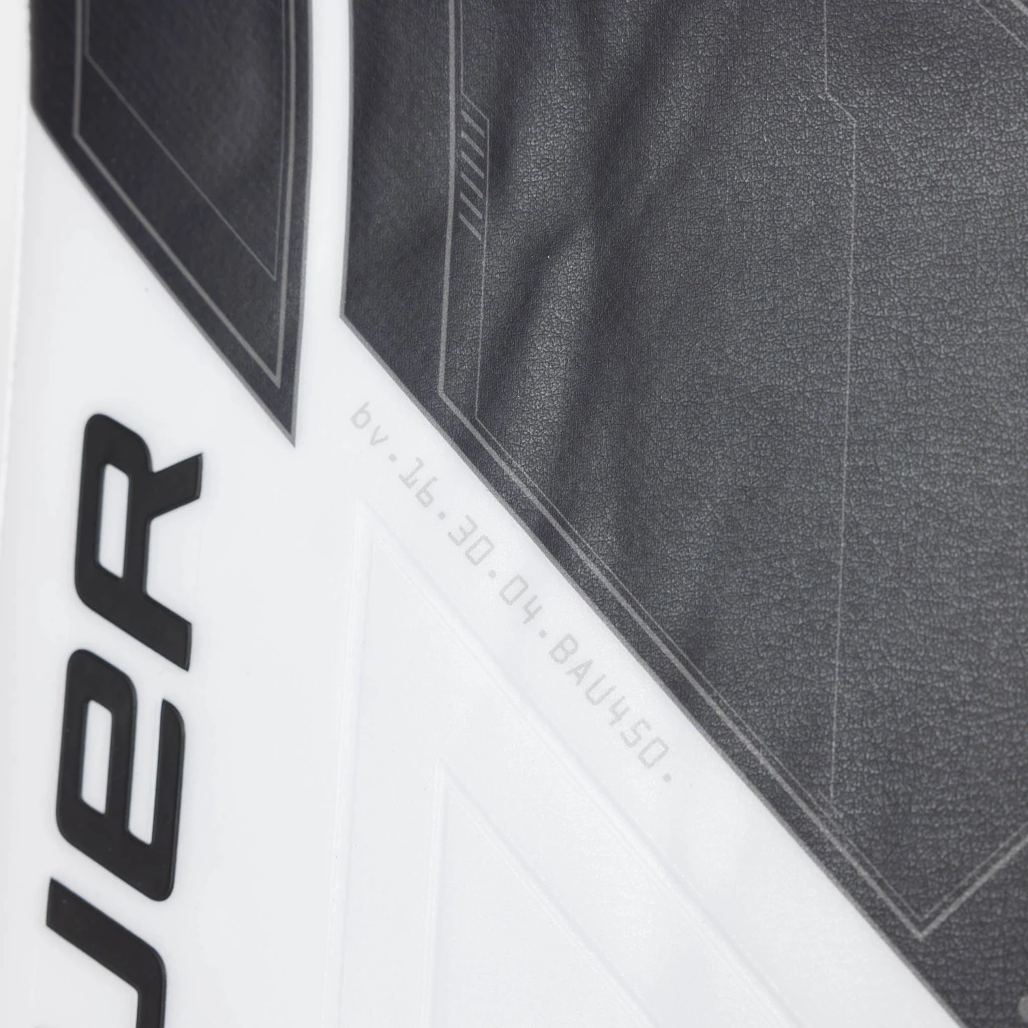 The blocker looks very similar in structure and shape to previous Supreme iterations, with a major and noticeable difference over the exterior: the use of Bauer’s brand new SL1D3R skin. This skin can also be found on the leg pads and greatly enhances overall durability and rebound pop in the blocker. The Bauer and Mach logos, as well as the graphics, have been embossed and debossed to flow nicely with the new cybernetic theme of the gear.