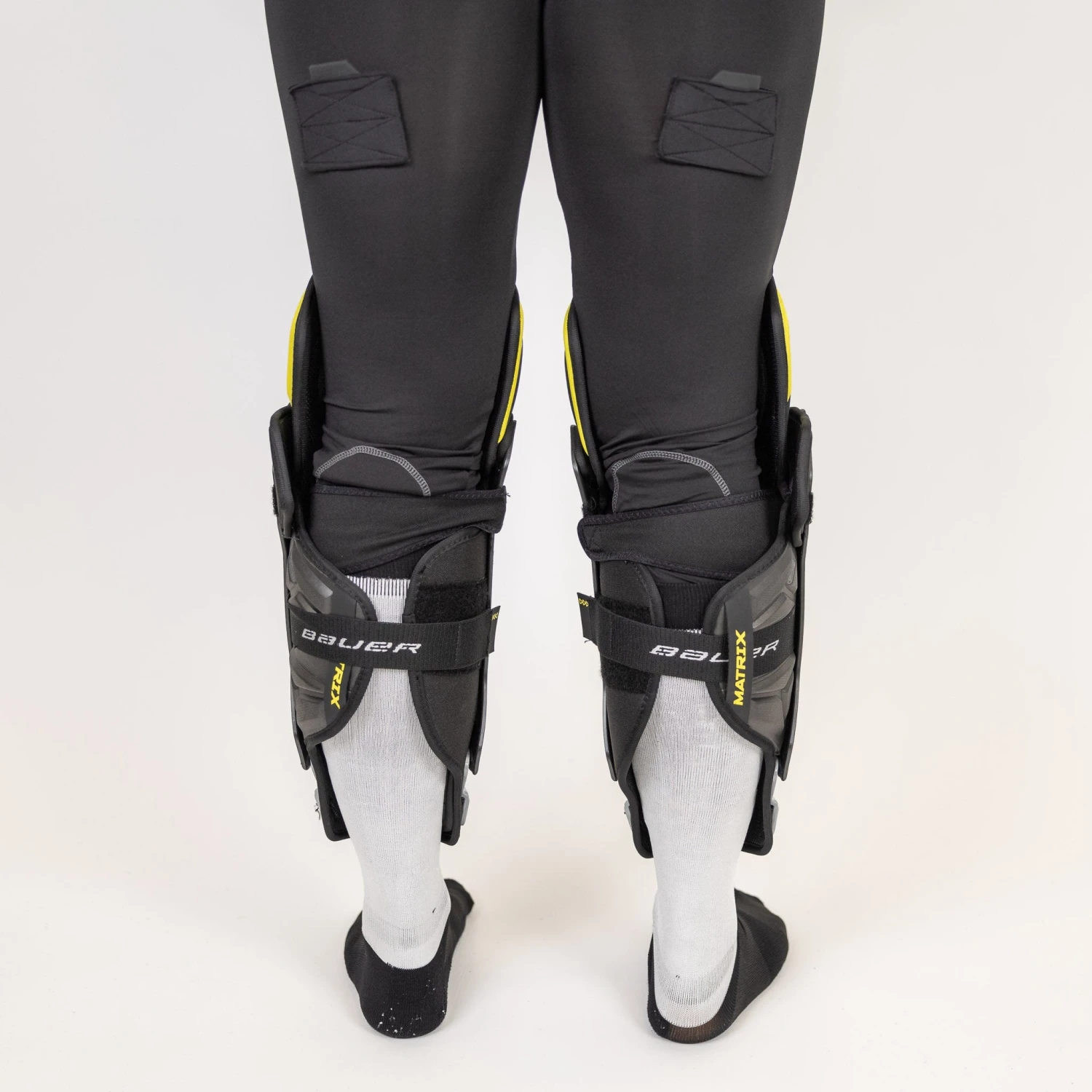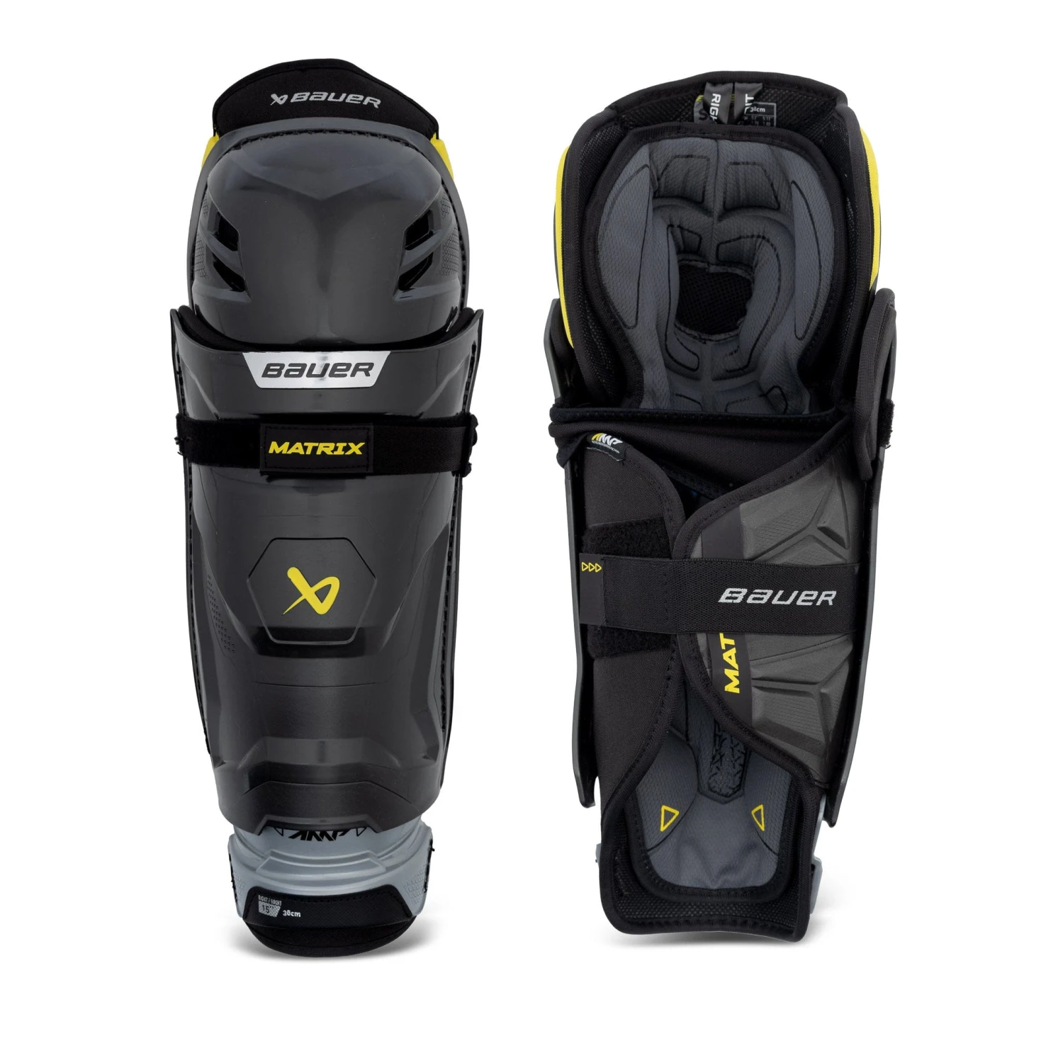 The Bauer Matrix shin guards are equipped with the advanced X-Flex shield shin cap, offering enhanced mobility and improved skating stride. The X-Flex shield shin cap features a hinged flex design that allows for a more natural and unrestricted range of motion while skating, ensuring that players can move with greater ease and efficiency on the ice.