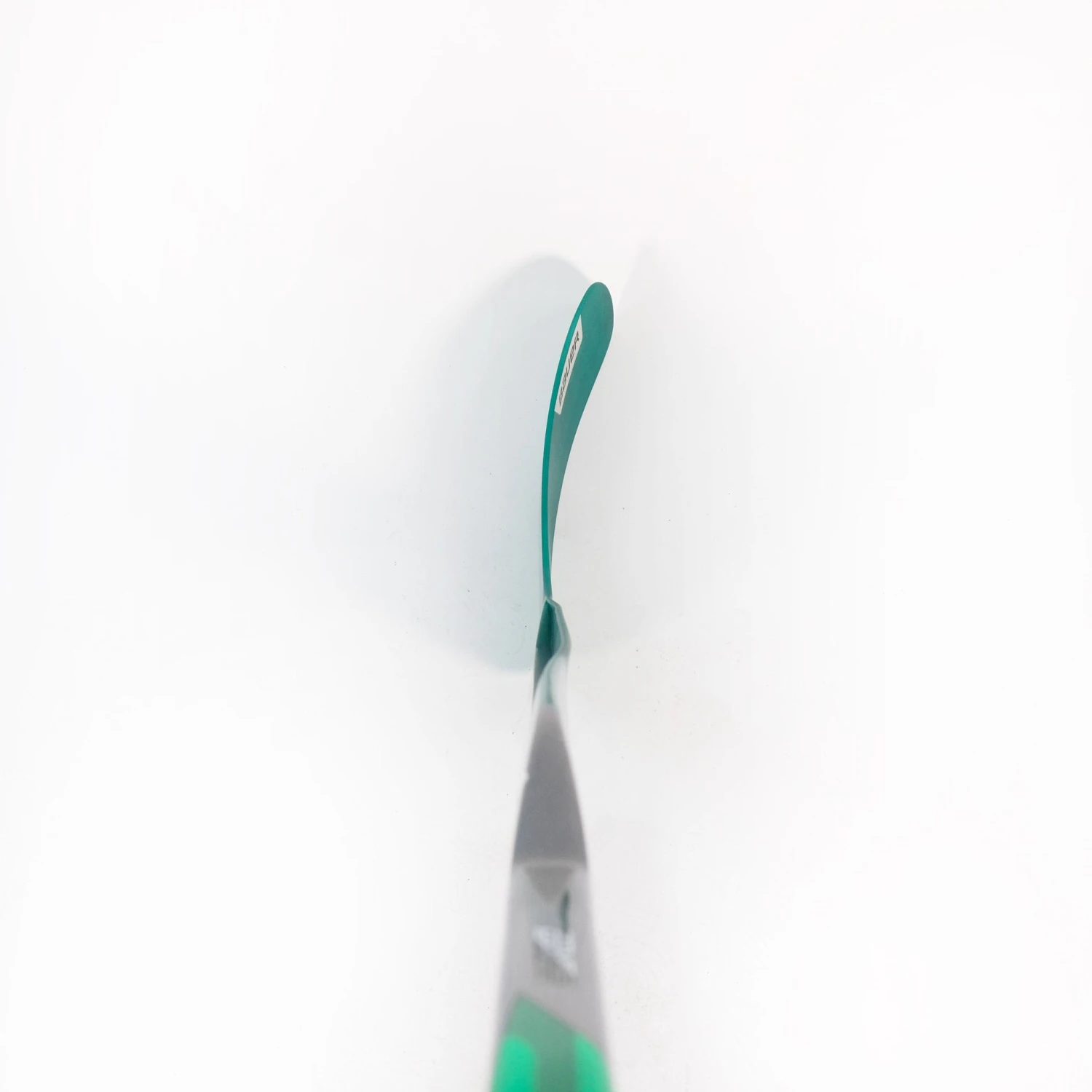 This custom Bauer Supreme 3S Pro goal stick is a pro return from AHL goalie Mat Robson. It has been outfitted with a Supreme Ultrasonic graphic over a Supreme 2S Pro construction. Pro stock goalie sticks possess curves for the goalie they were designed for; the Robson curve is similar to a Bauer P29 (player) curve with a round toe.