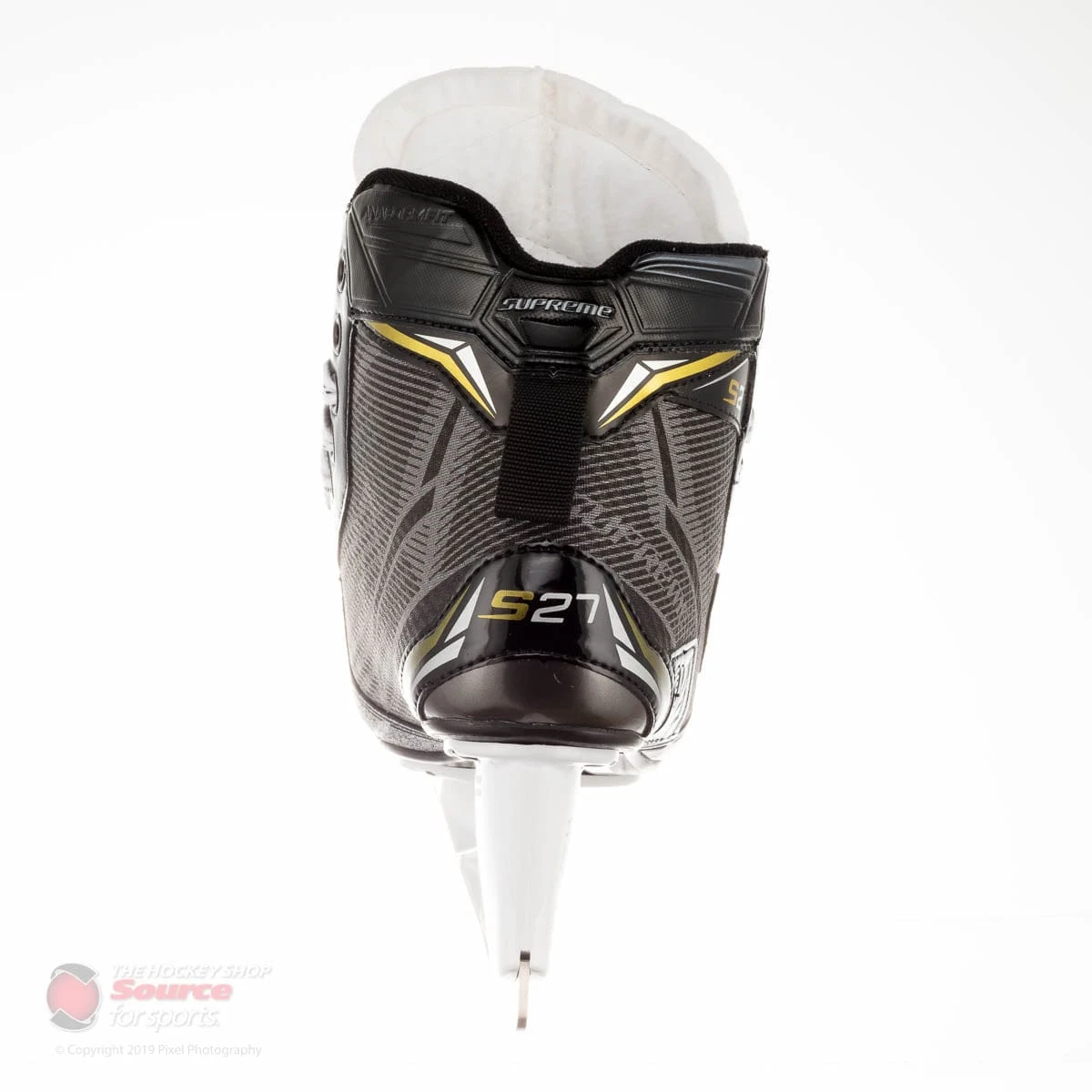 The Bauer Supreme S27 Senior goal skate builds upon the widespread success of the previous Supreme S170, while bringing further value to the entry-level price point. Through the use of upgraded materials and technologies in the boot, the S27 Sr skate is able to bring improved fit and function to the recreational goalie.