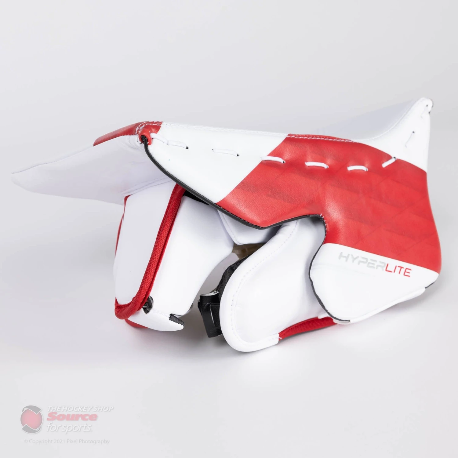 The Vapor Hyperlite Blocker is offered in the stock colours of all White, White/Black, White/Navy, White/Blue and White/Red. However, goalies that seek more custom options can customize their dream set on Bauer.com. Bauer also offers their True Design custom graphics program, creating endless possibilities for goalies through their digi-print capabilities.