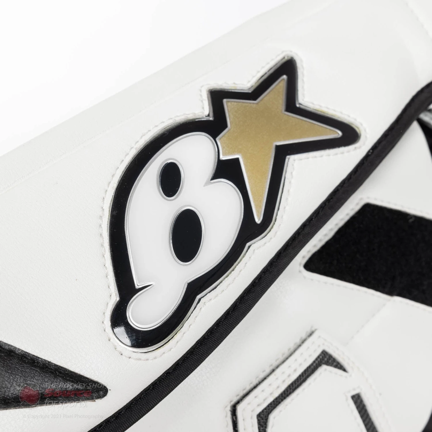 The Brian’s OPTiK X2 Junior Goalie Leg Pads are available in sizes 27+1 and 29+1. The X2 is a stock color offering only, available in All White, White/Black, White /Black/Red, White/Blue, and White/Red.