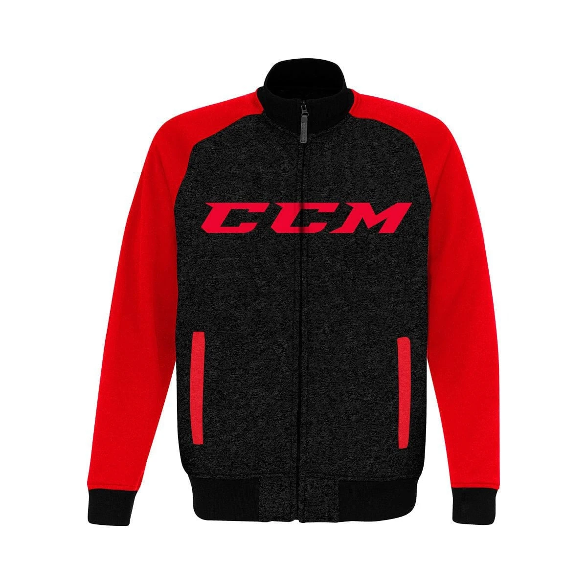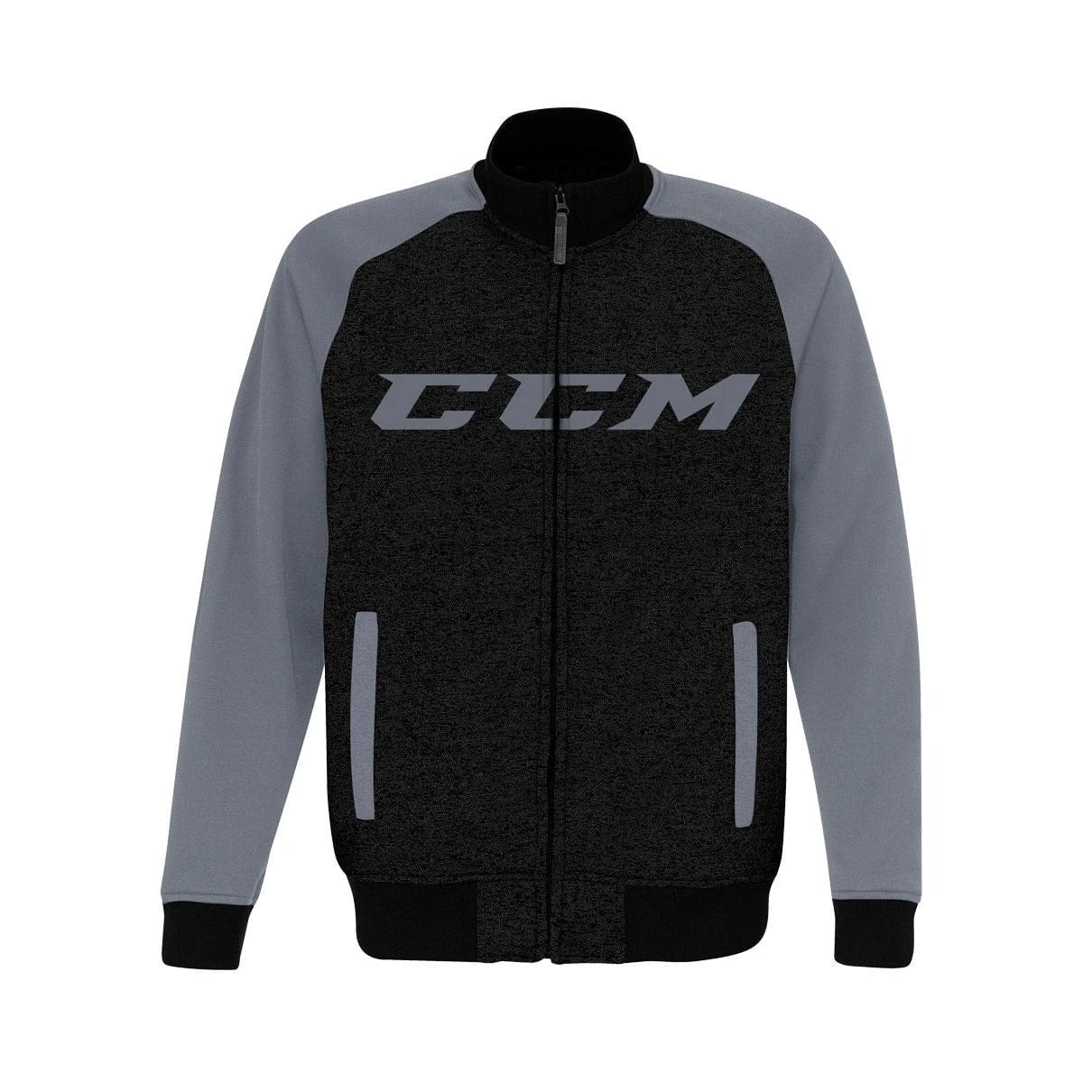 Raglan sleeve, welt pockets, rib collar, cuffs and waistband. Tech fleece heather body.