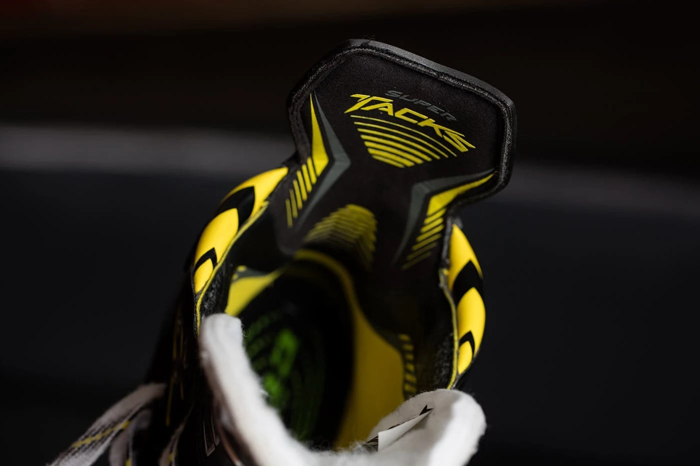 The CCM Super Tacks were engineered through leading biomechanics research in hockey and state-of-the-art construction technology. Five years in the making, the Super Tacks skates are well worth the wait. Most notably, a full one-piece carbon composite boot provides a fully anatomically shaped fit that runs through the toe cap and outsole to achieve maximum comfort while providing unmatched performance.