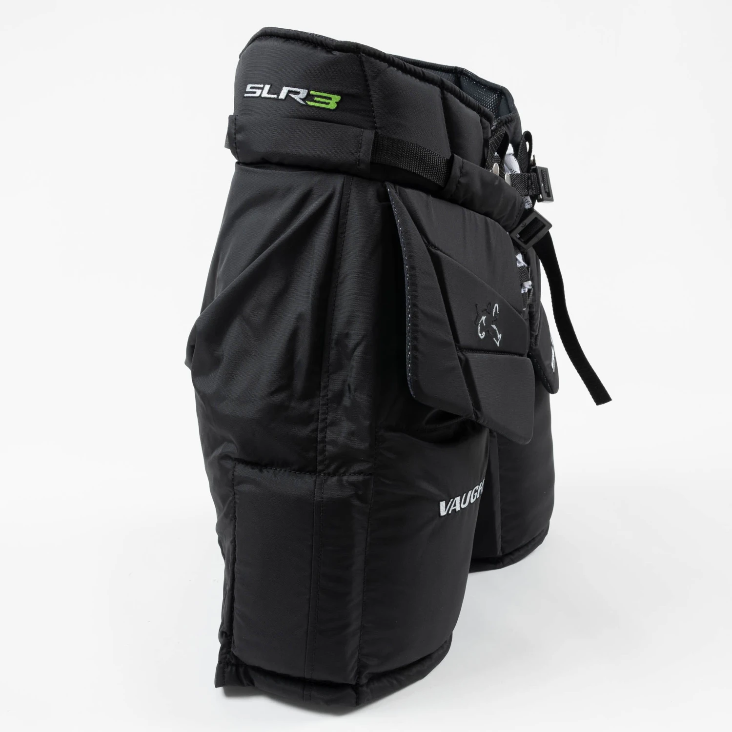 New for 2022 is the SLR3 goalie pants from Vaughn. These pants have been built wider and taller, with various high-performance and protective properties. This tech includes inner thigh five-hole blockers, molded kidney protection, a taller upper waist section, and an extended upper tailbone padding. The SLR3 series is optimized to enhance performance in the butterfly position, making it a good set for younger players who find themselves down in butterfly often.