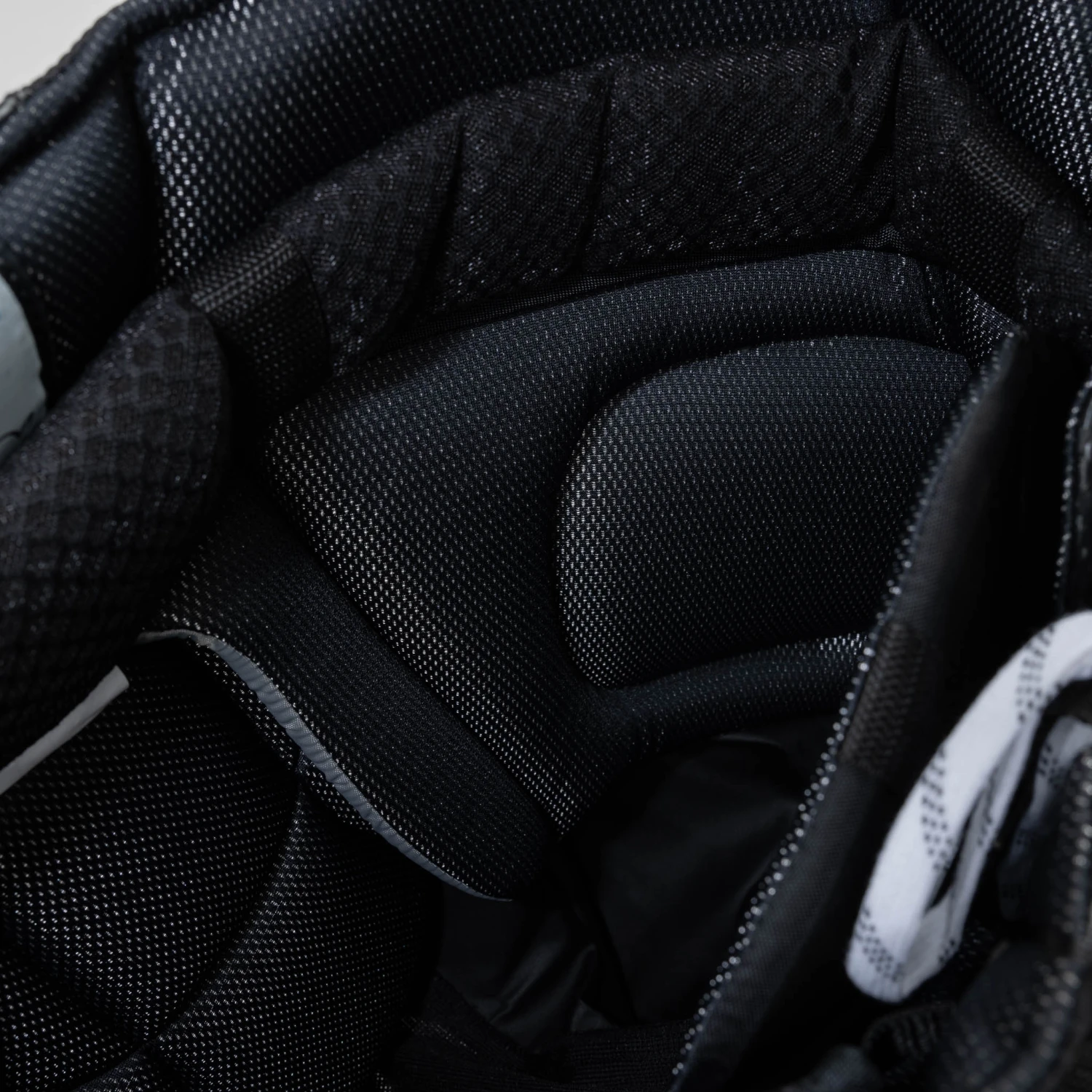 The thigh padding is wide and curved for better net coverage (11” in width). The inner thigh section has been furnished with five-hole padding blockers to cover that area and aid in making those kinds of saves.