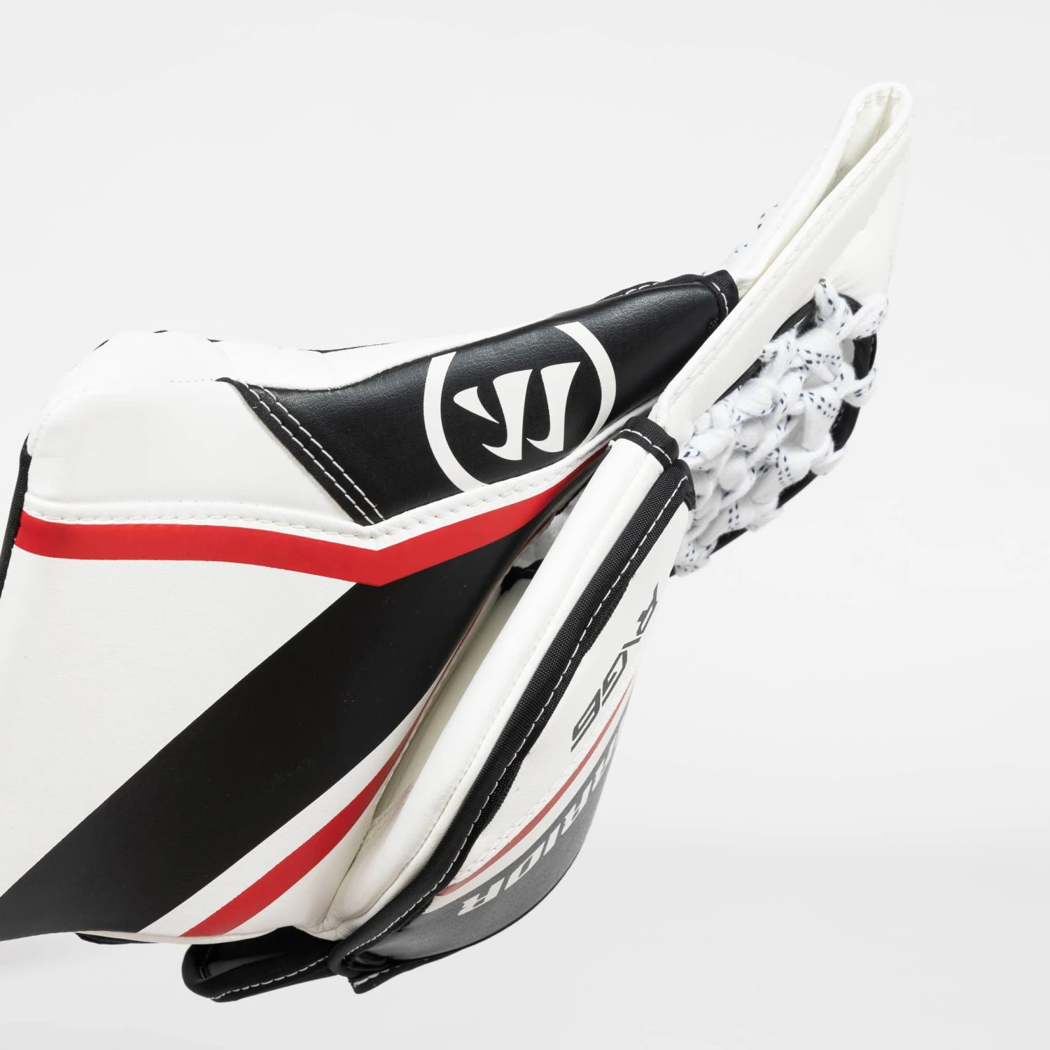 The Warrior Ritual E+ Junior catcher comes in Regular and Full Right orientations in the following colourways: White/Black/Red, White, White/Black, White/Red, White/Royal, and Black.