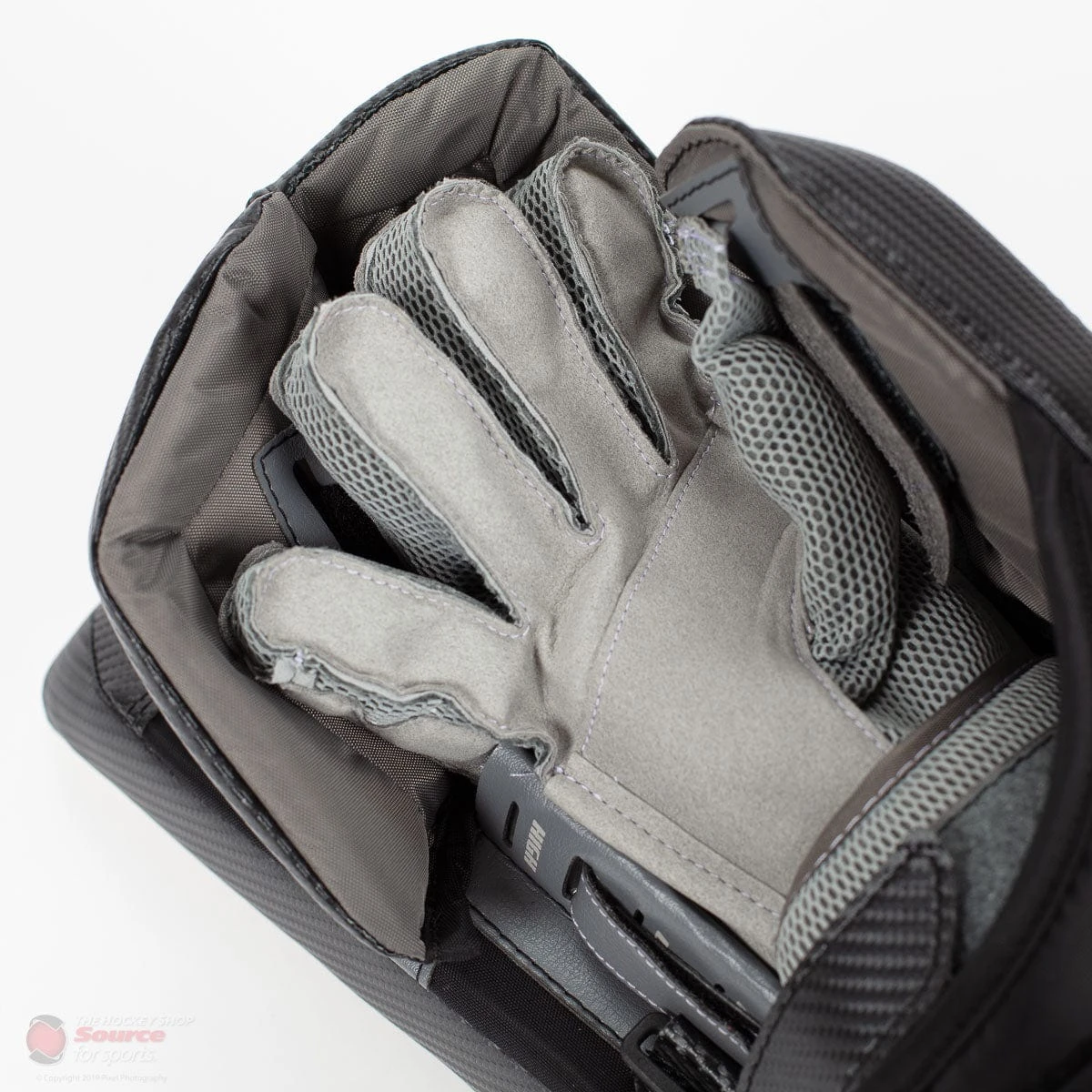 The side board of the blocker also features ample finger protection, designed to fit the goal stick without any weak spots but also no interference. The GT2 blocker has contoured finger protection to make sure your fingers are protected, no matter the shot. Using plastic molds and HD foam, you can be confident on any shot knowing you’re protected. The finger protection also has velcro adjustments to add customizability to how tightly your fingers are connect to the finger protection, giving the choice of mobility.